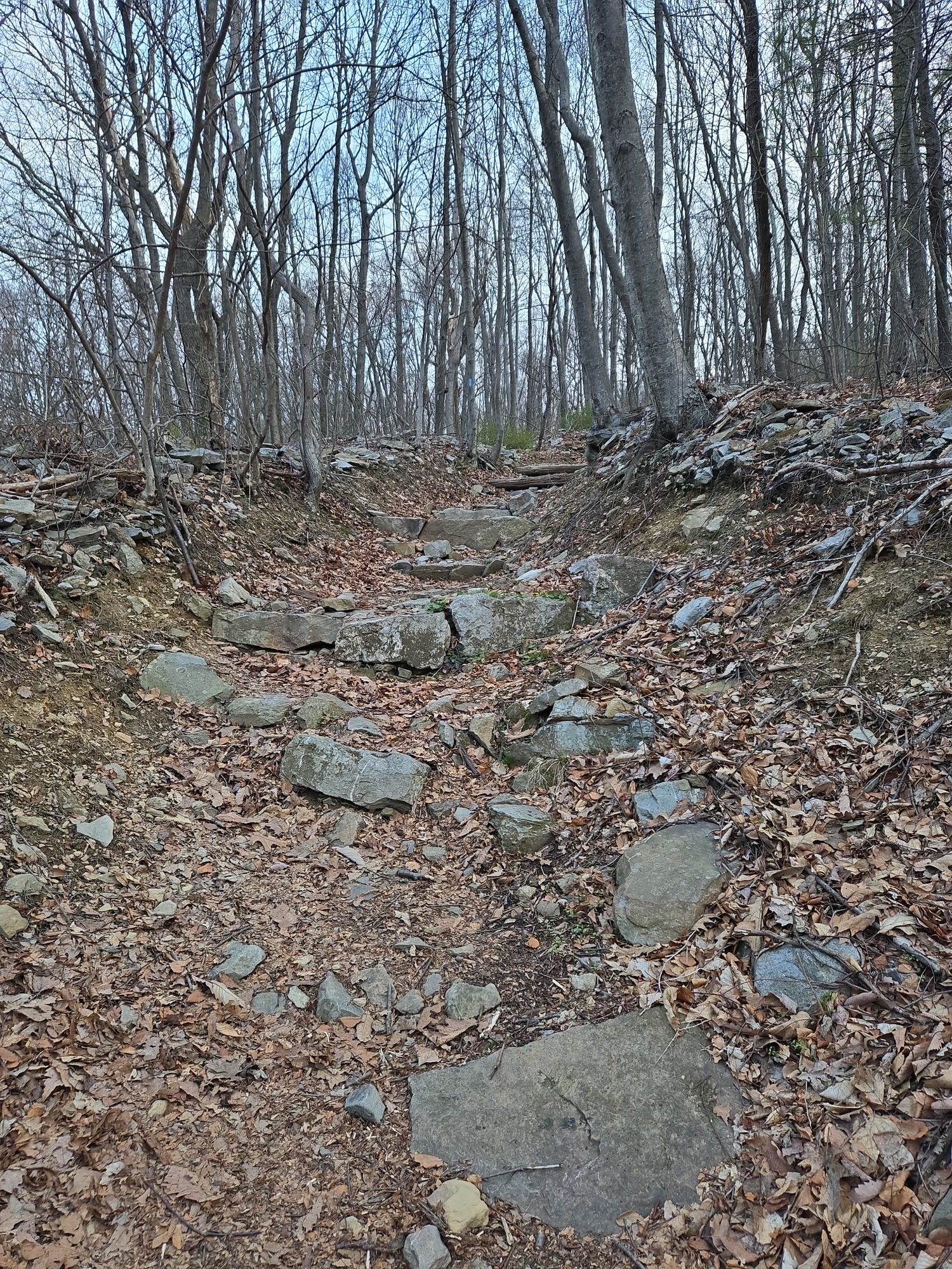 The trail wound up the mountain and along the way I saw some deer and there was a natural spring. As it blended with the Appalacian Trail there was a cleared area for tents and the Leroy Smith Shelter complete with a latrine and firepit.